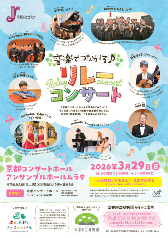 【アンサンブルホールムラタ】 音楽でつながるリレーコンサート 「京都コンサートホールで演奏してみたい!」そんな思いで集まった8組の音楽愛好家による、多彩な“音楽… -
